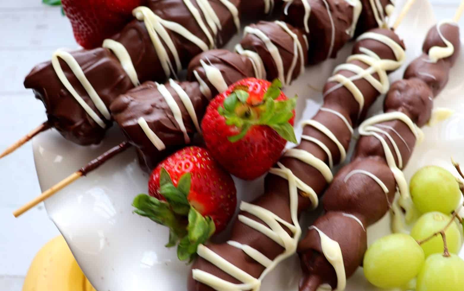 - Ambil buah lalu celupkan ke coklat leleh dan taburi dengan topping di atasnya