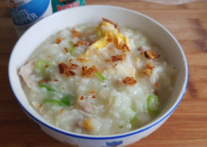 - Setelah bubur matang, angkat dan sajikan dalam mangkuk.
