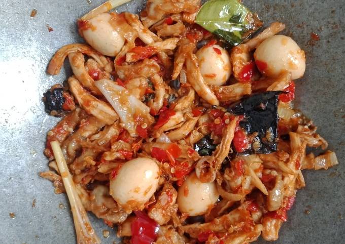 4. Masukkan telur puyuh yang telah direbus, aduk rata.